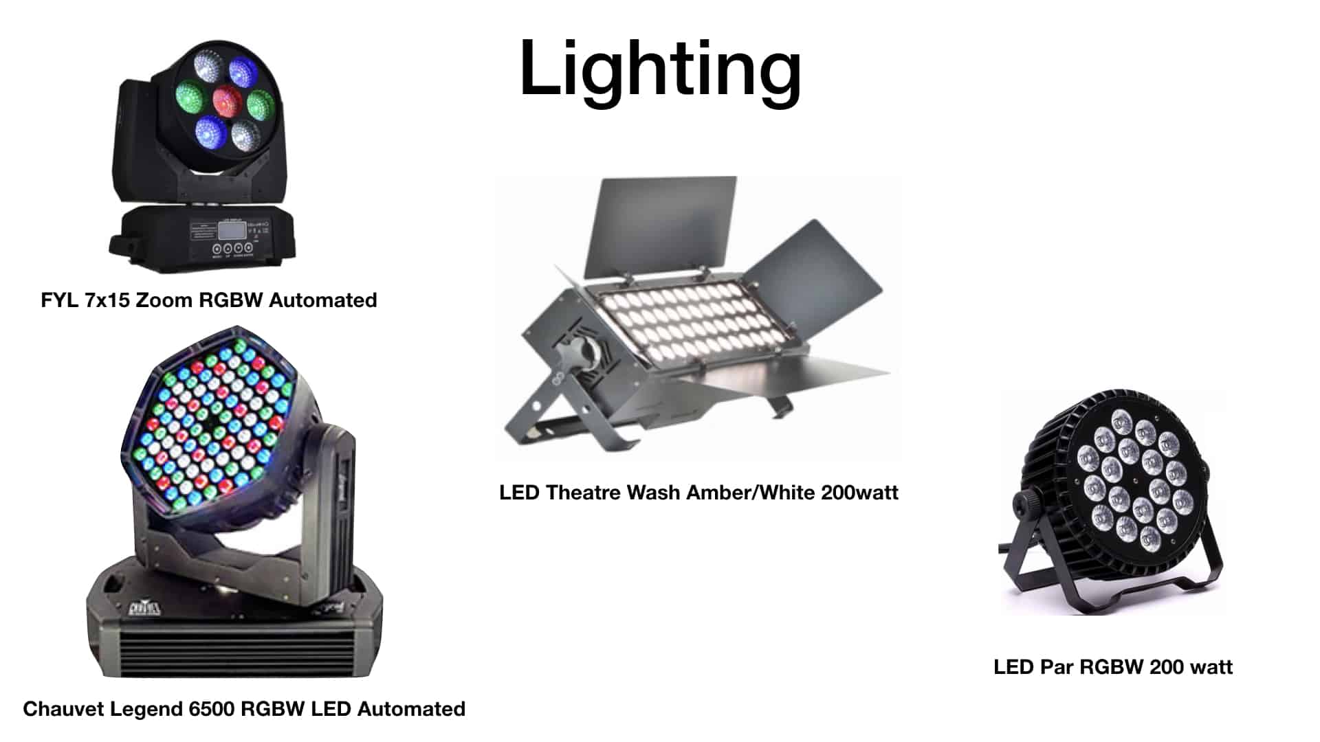 • We provide concert sound reinforcement, specialty lighting, and A.V. equipment rental and service to a wide range of clients.